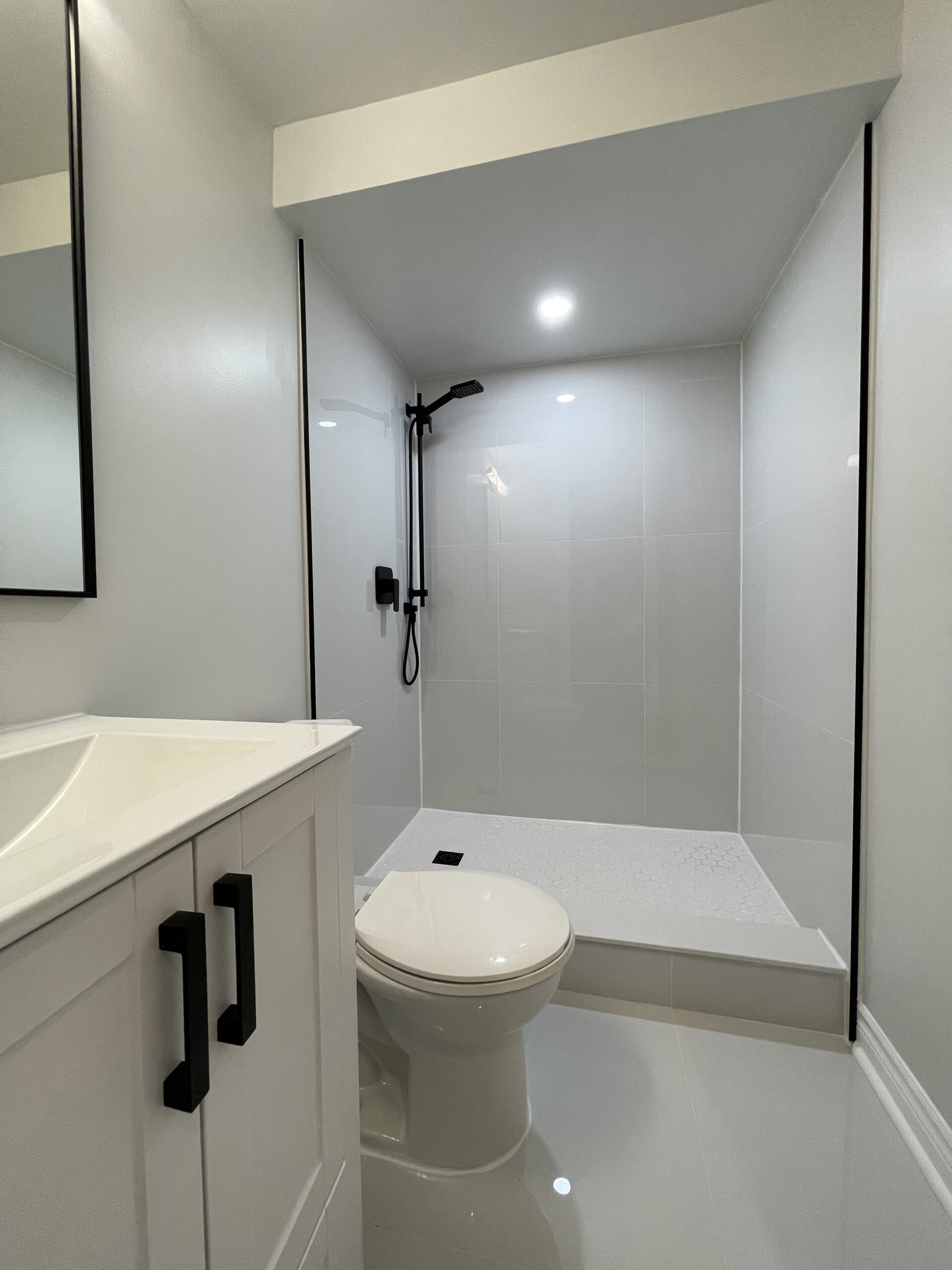 Susan’s mother required a bathroom that was not only accessible but also safe for her recovery and daily use. Their basement bathroom had only a toilet and vanity, which wasn’t sufficient for her needs. They needed a shower with appropriate safety features to ensure that she could bathe independently and comfortably. Our challenge was to design a solution that would enhance accessibility while blending seamlessly with the existing space.