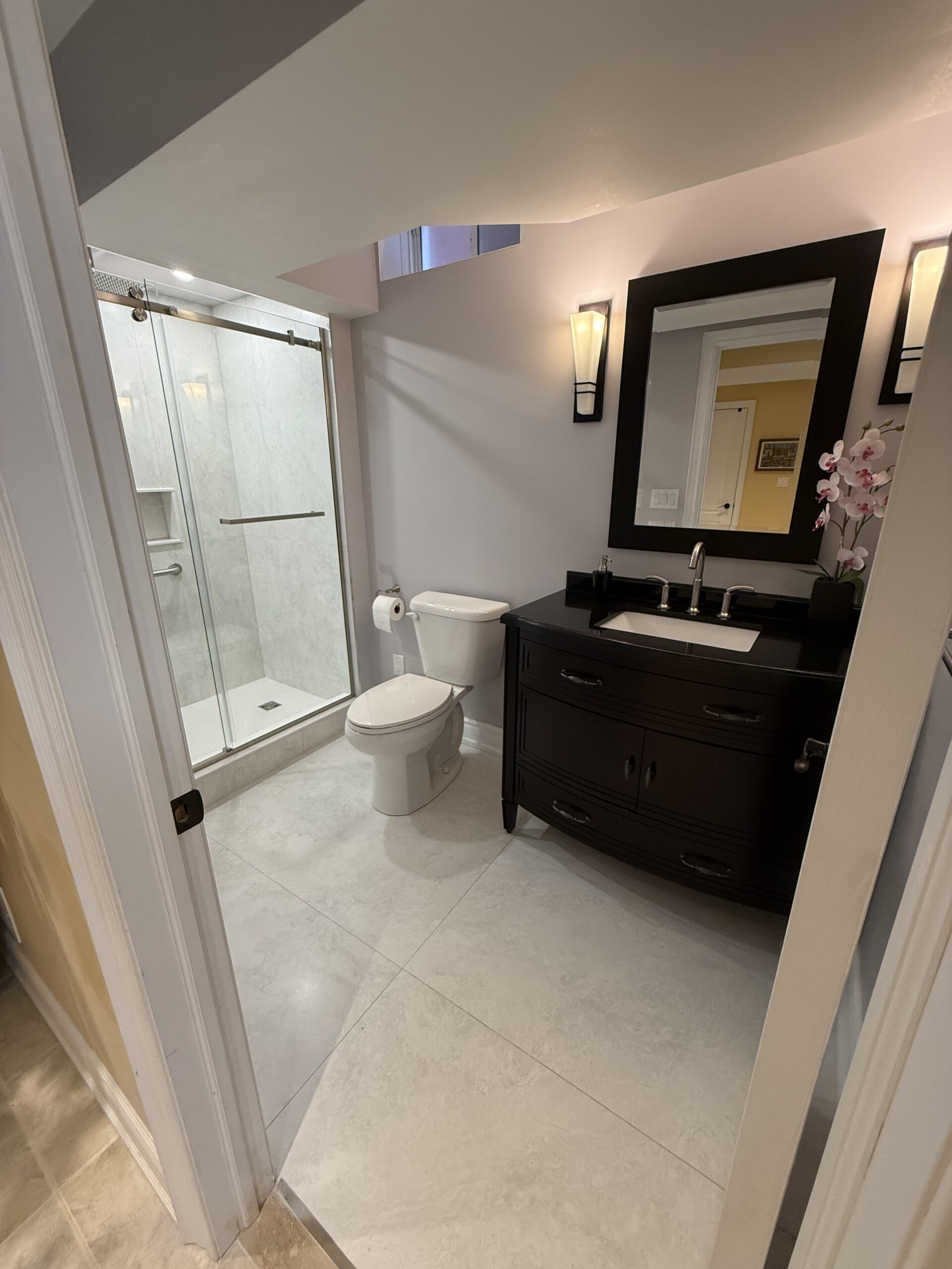 The newly renovated basement bathroom provided a significant improvement in Susan’s mother’s quality of life. She was able to use the shower safely and comfortably, giving her both independence and peace of mind. Beyond the practical benefits, this renovation also brought immense relief to Bill and Susan, knowing that their home could now better support their family’s evolving needs. Additionally, the renovation added value to their property by transforming their basement bathroom into a fully functional 3-piece bath. This thoughtful upgrade not only served an immediate purpose but also made their home more appealing for future resale.